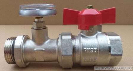 BRH golyóscsap hőmérővel 1"KB egyenes hőmérő Ø40mm/0-120°C